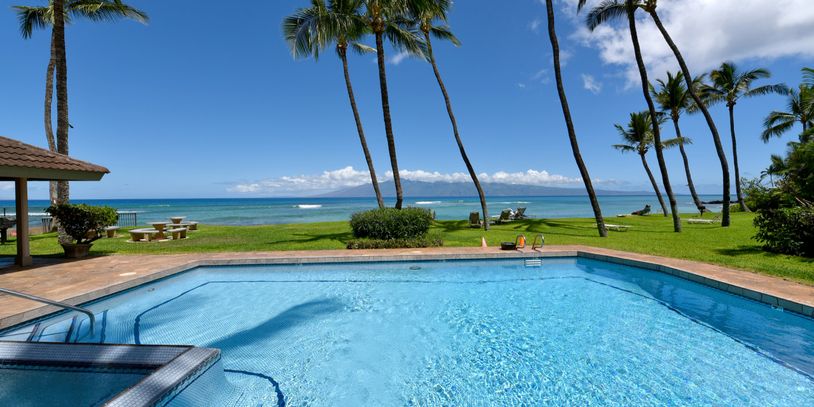 This exclusive ocean view cabana is peaceful and private with pool, spa and gym. Swim with the resident turtles on the oceanfront, and enjoy sunset and whale watching from your lanai.